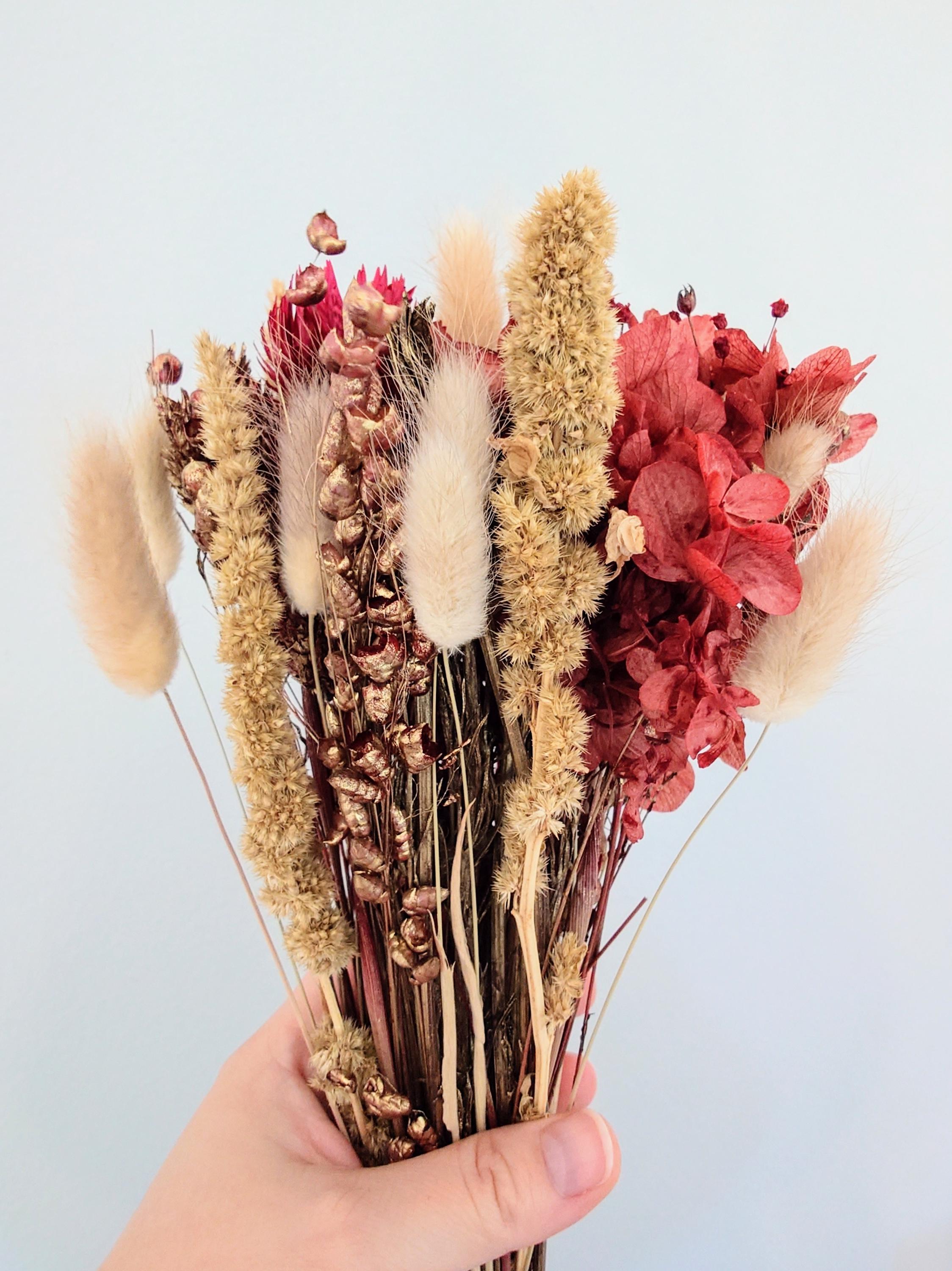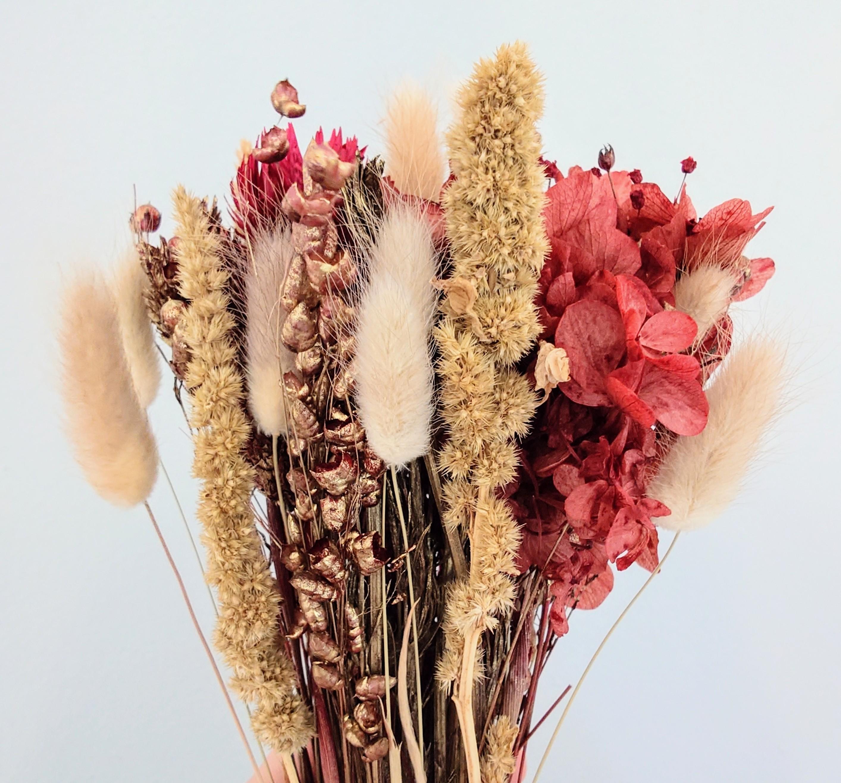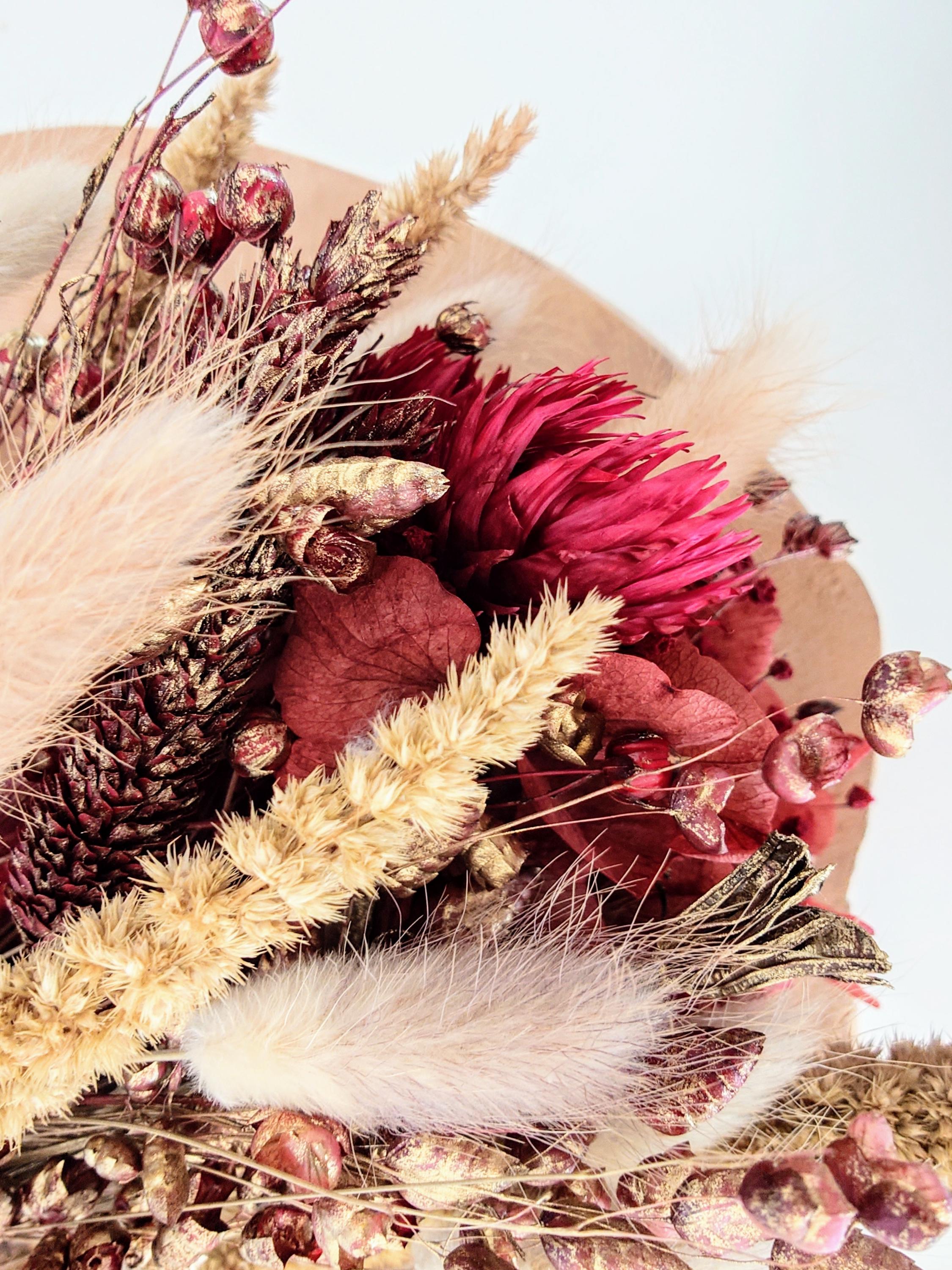 Dried flowers Christmas, dried flower bouquet Christmas, dried flowers red and gold