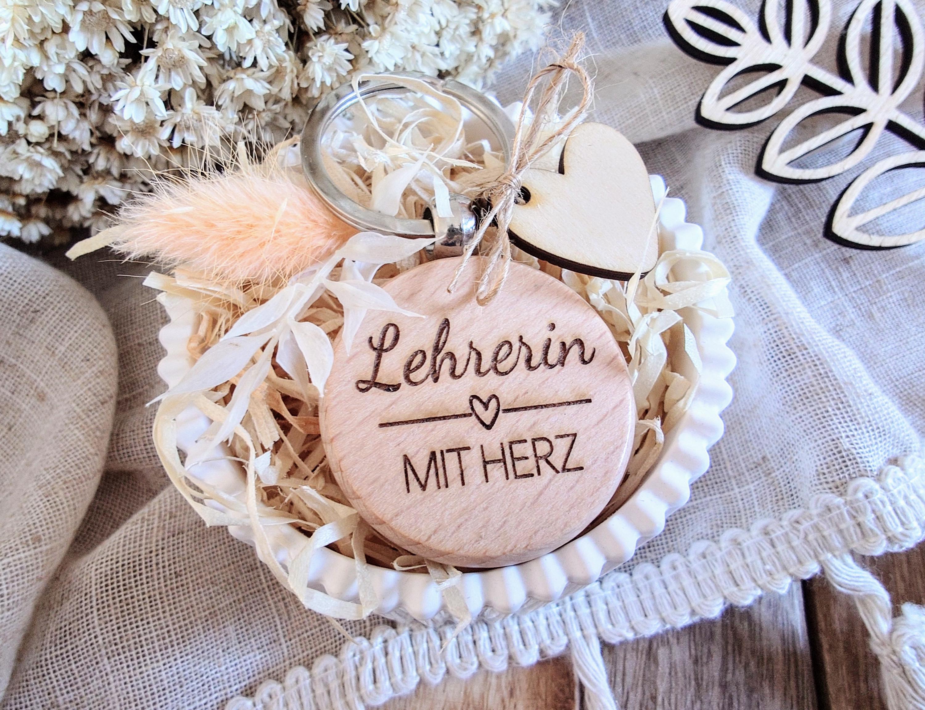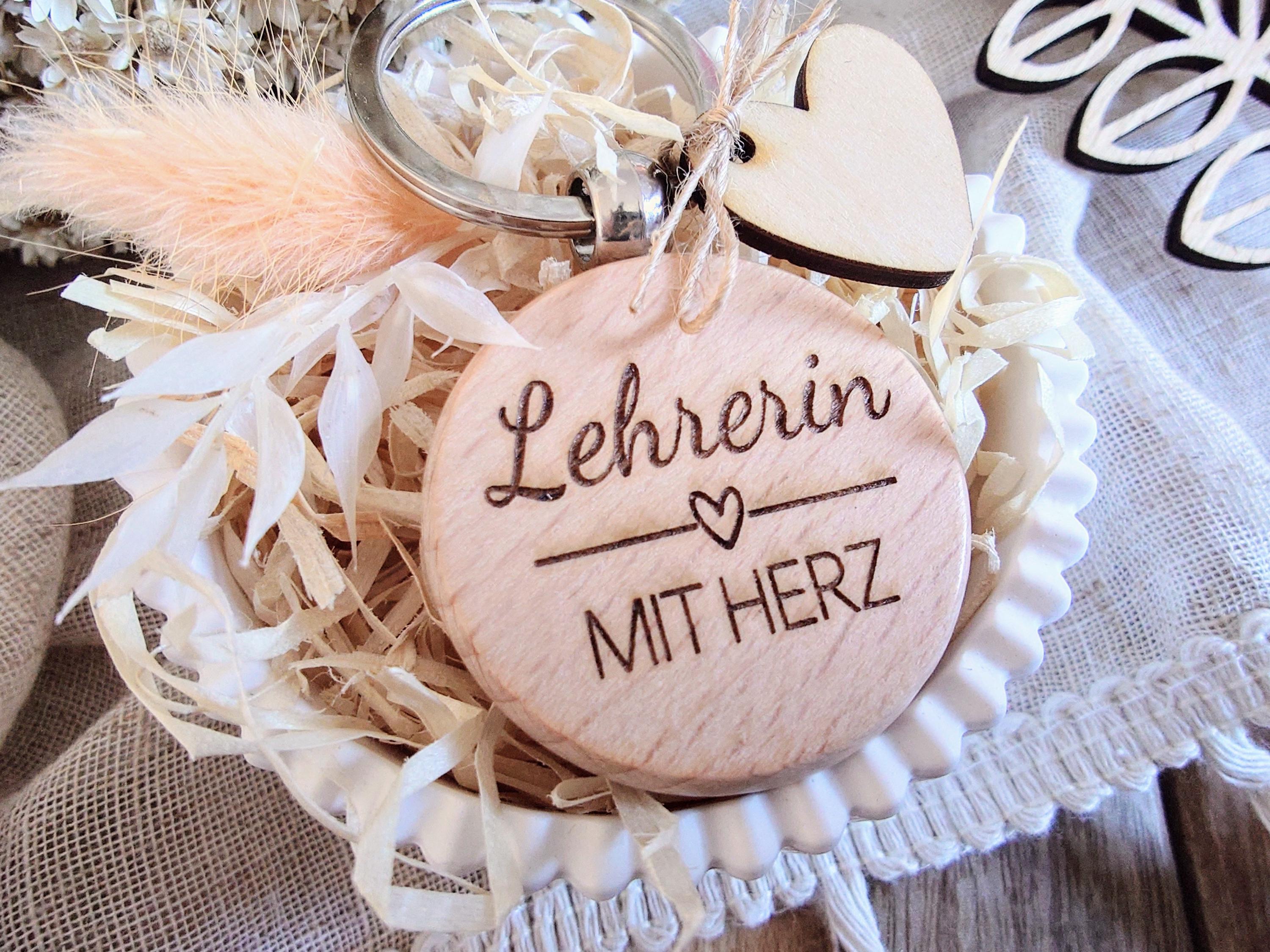 Gift set for teachers – a lovely wooden keychain “Teacher with heart” as a special farewell gift at the end of the school year.