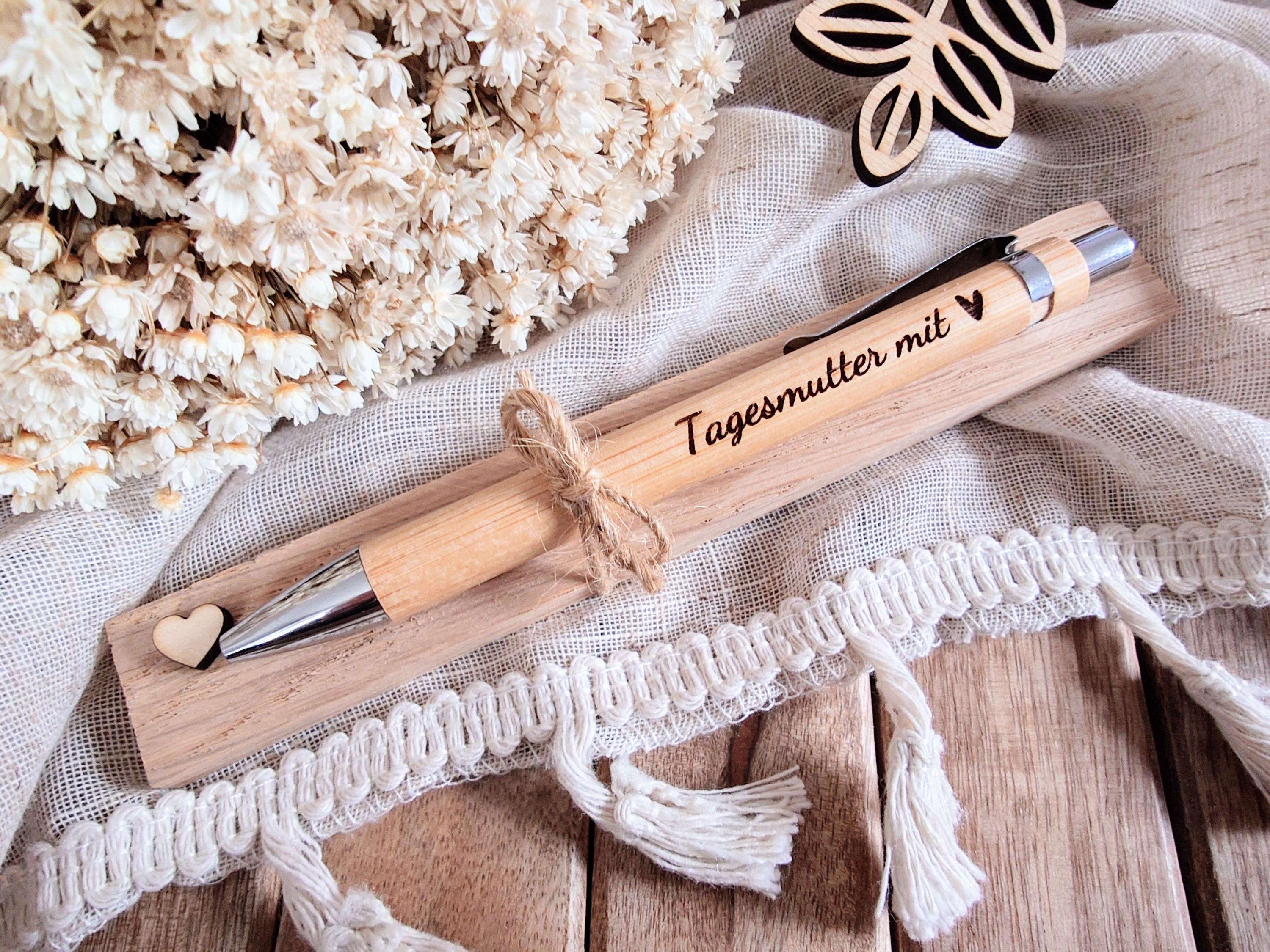 The ballpoint pen comes as pictured on a small oak wooden board with a heart, so you can give it as a gift right away.