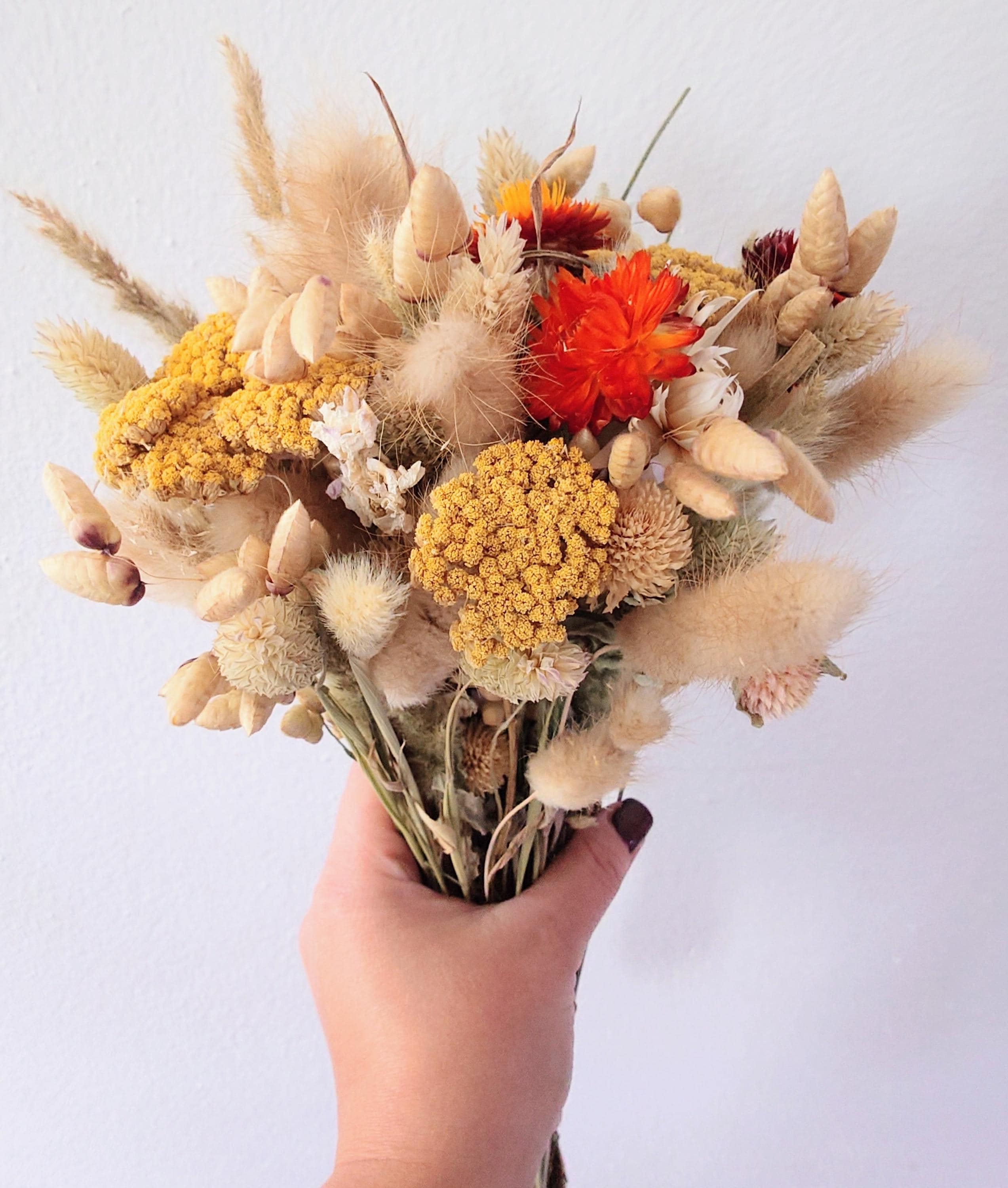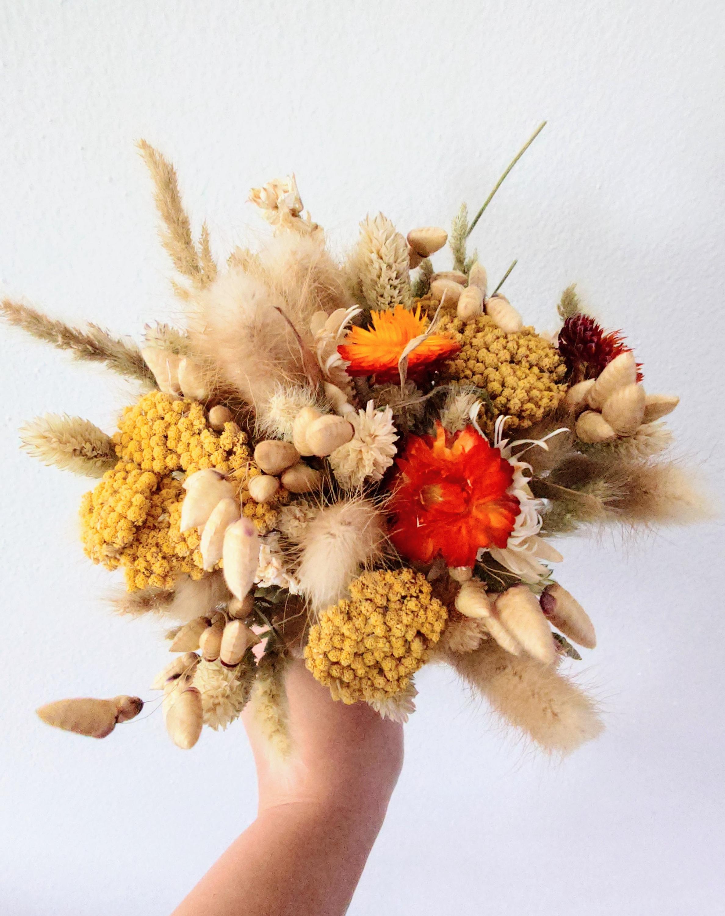 Dried flowers autumn, dried flower bouquet autumn, dried flowers nature, dried flowers yellow orange